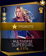 Multiverse Supergirl, a iii-star base hero, with enough shards to upgrade to 4 stars.